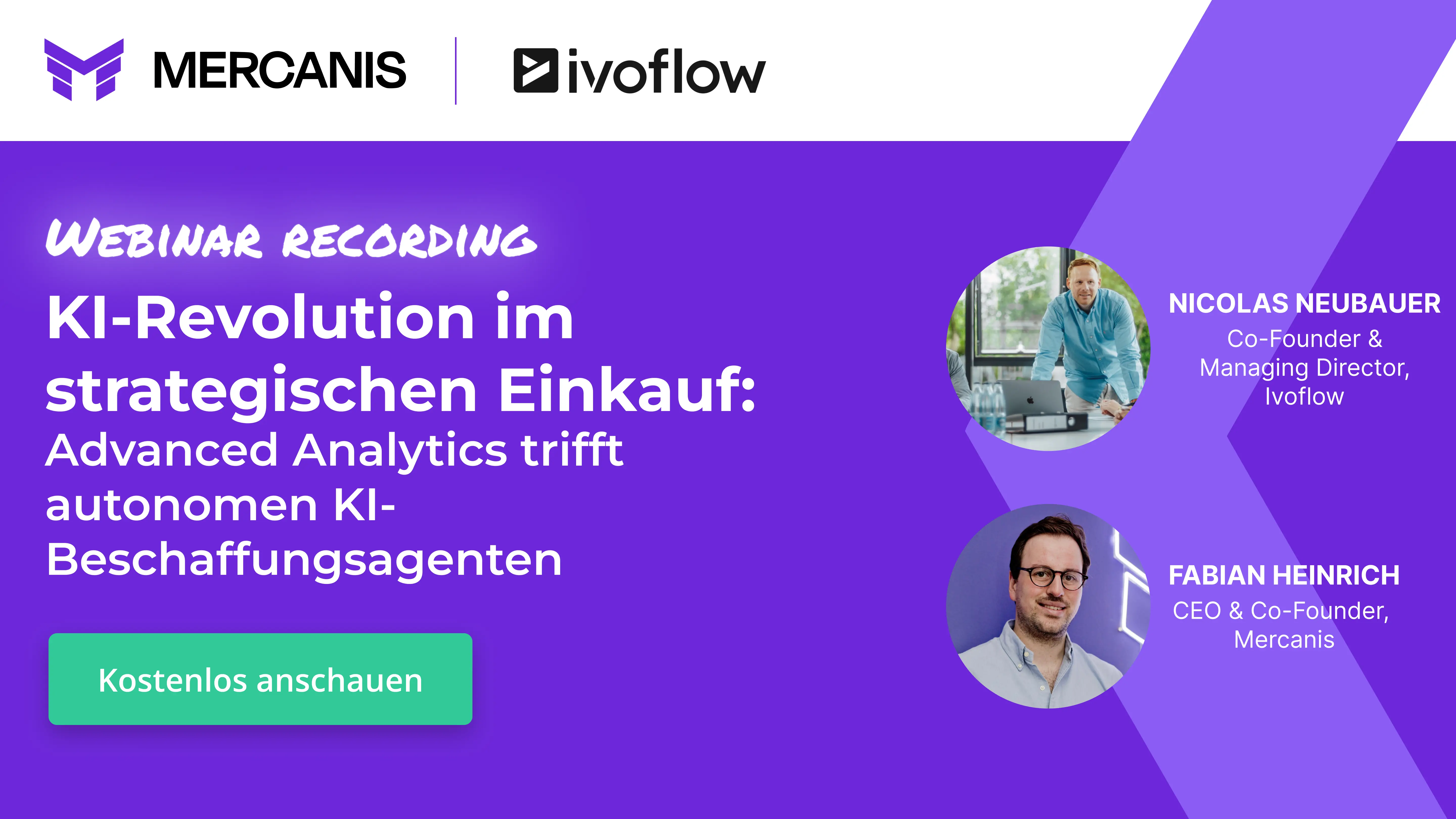 In diesem Webinar geben Florian Hasibar, CEO & Co-Founder von mytalents.ai, und Fabian Heinrich, CEO & Co-Founder von Mercanis, einen umfassenden Überblick über den Einsatz von Künstlicher Intelligenz im Einkauf. Gemeinsam werden aktuelle Trends, Herausforderungen sowie die nützlichsten Anwendungsfälle diskutiert.