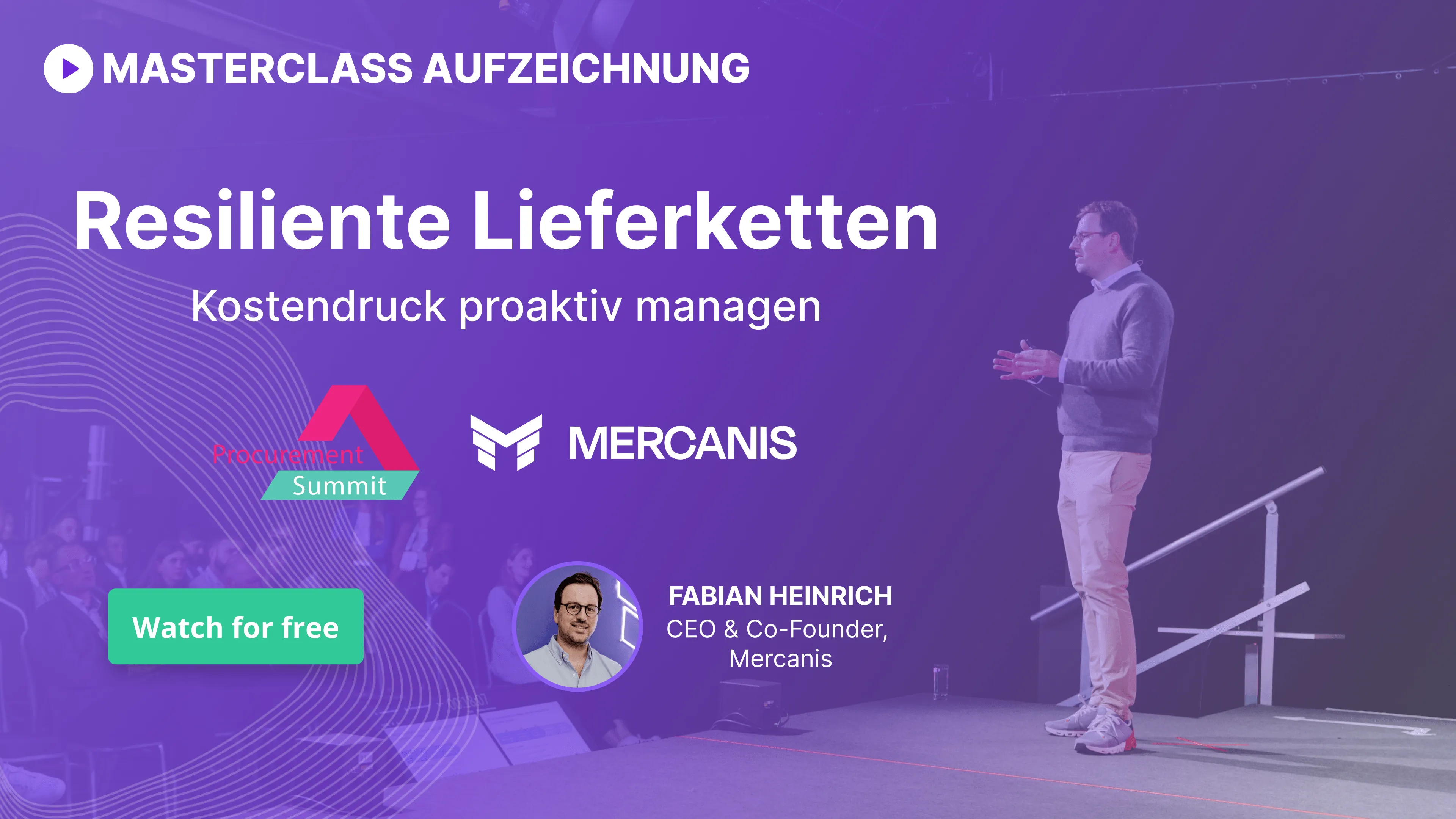 Erfahren Sie in unserer Masterclass, wie Sie dem Kostendruck durch volatile Lieferketten und Preisschwankungen mit den richtigen Methoden, fundierten Analysen, präzisem Datenmanagement und den Lösungen von Mercanis erfolgreich begegnen können.